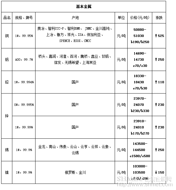 三個(gè)月期銅 CMCU3 收低0.5%,報(bào)每噸6,877美元;期鎳 CMNI3 跌0.8%,報(bào)每噸14,215美元;期鋅 CMZN3 漲0.6%,報(bào)3,154美元;期鉛 CMPB3 跌0.8%,報(bào)2,350美元;期錫 CMSN3 大漲2.1%,報(bào)每噸21,475美元。