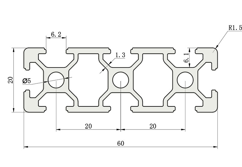 適用于應(yīng)力及強(qiáng)度較大的框架組合結(jié)構(gòu),它的外型采用圓角過(guò)渡,表面經(jīng)過(guò)陽(yáng)極氧化處理,高雅美觀并抗腐蝕,它通常采用M6X20高強(qiáng)度專業(yè)螺栓加彈性扣件的內(nèi)部連接方式,堅(jiān)固又可靠,是工業(yè)框架應(yīng)用廣泛的型材之一。