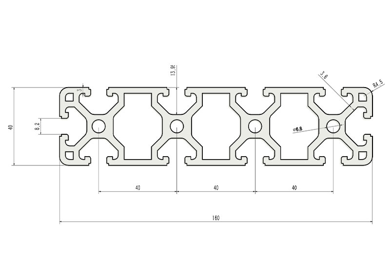 適用于應(yīng)力及強(qiáng)度較大的框架組合結(jié)構(gòu),它的外型采用圓角過渡,表面經(jīng)過陽極氧化處理,高雅美觀并抗腐蝕,它通常采用M8X20高強(qiáng)度專用螺栓加彈性扣件的內(nèi)部連接方式,堅(jiān)固而又可靠,是工業(yè)框架應(yīng)用較為廣泛的型材之一。