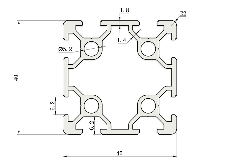 適用于應(yīng)力及強(qiáng)度較大的框架組合結(jié)構(gòu),它的外型采用圓角過(guò)渡,表面經(jīng)過(guò)陽(yáng)極氧化處理,高雅美觀并抗腐蝕,它通常采用M8X20高強(qiáng)度專(zhuān)用螺栓加彈性扣件的內(nèi)部連接方式,堅(jiān)固而又可靠,是工業(yè)框架應(yīng)用較為廣泛的型材之一。